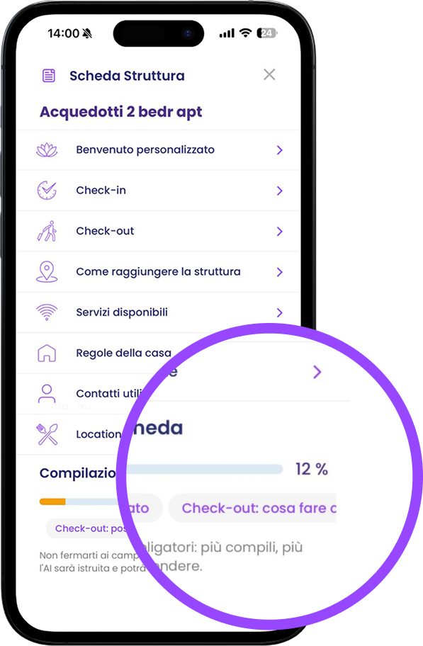 Il nostro SaaS AI per Property Manager risponde in modo autonomo ai messaggi degli ospiti, fornendo informazioni specifiche per ogni appartamento. Risposte rapide, precise e personalizzate in base alla scheda dell’alloggio.